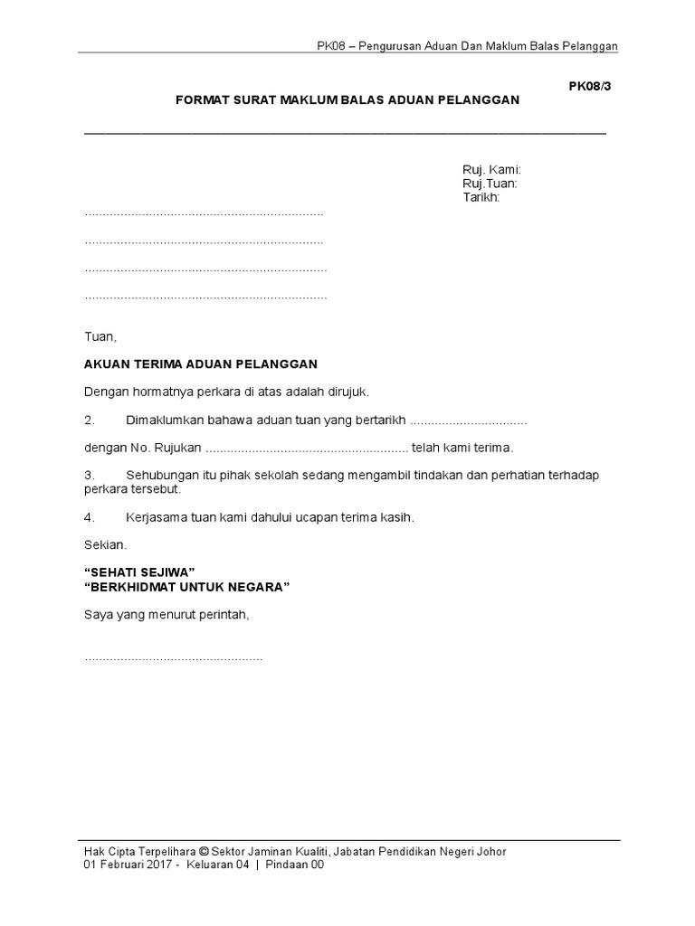Pk08 3 Format Surat Maklum Balas Aduan Pelanggan Pdf